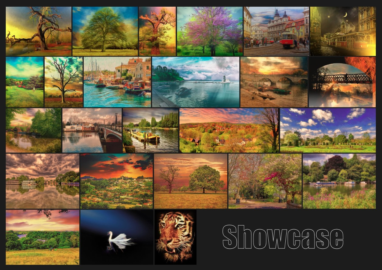 1-4,Β  8 and 20 – Trees Bushy Park,Β 5 and 6 – Prague,Β 7 – Richmond Park,Β 9 – Paxos, 10 – Pontikonisi, Corfu , 11 and 22 – River Thames at Richmond, 12 and 13 – Dapdune Wharf on the River Wey, 14 – River Thames at Hampton Court Bridge, 15 – River Thames at Kingston Upon Thames,Β  16 and 21 – Lewes, East Sussex, 17 – Kew Gardens, 18- River Thames at Molesey, 19 – Gaia, Portugal,Β  23 – Petersham, 24 – Swan on the River Thames, 25 – Tiger, Gaia Zoo.