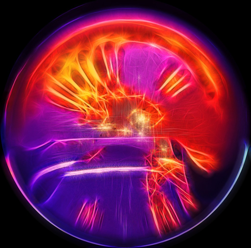 Crystal ball on top of my Android tablet running a mandelbrot generator app.. Overhead coloured LED lighting and some processing effects. Very experimental and raw but a lot of fun to do πŸ™‚