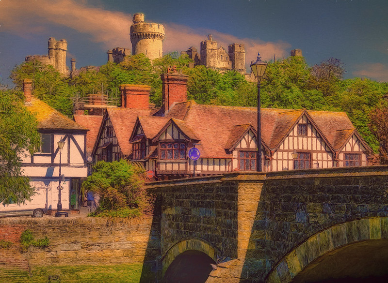 A painterly, chocolate box landscape work of Arundel on the river Arun.