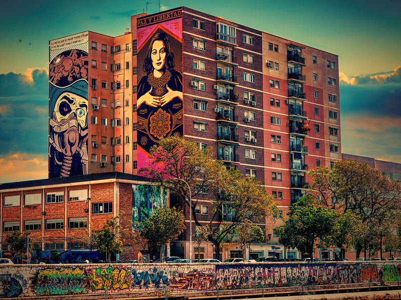 Hi everyone, “Looking Up”. Murals on a block of flats in Malaga, Spain. Due to ongoing health issues I’ve not been able or inclined to take and process many images for some while. We went to Malaga for a short trip, travelling as light as I could with just my E-PL8 plus 14mm and 20mm lenses due to my mobility issues but didn’t take many shots as I spent about half the holiday confined to our room with food poisoning. πŸ™