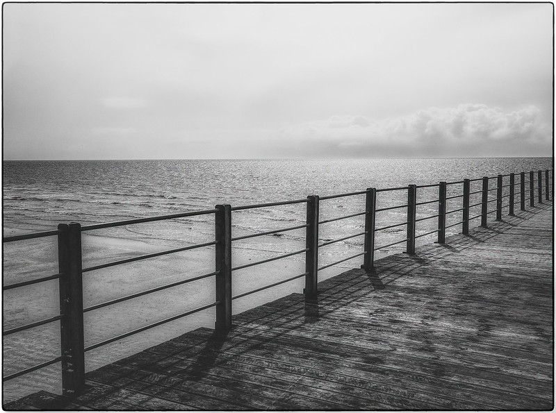 Monochrome landscape view from Bognor Regis Pier looking out to sea. Olympus E-M5 II and Lumix 20mm f/1.7