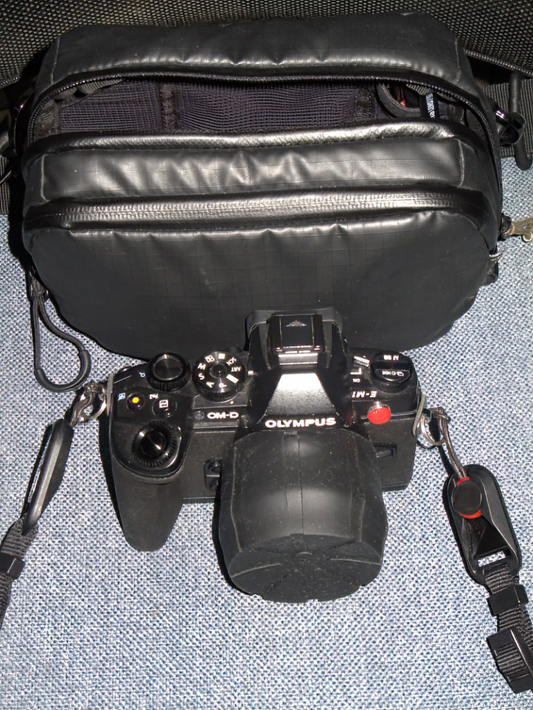 This got me thinking about adding a 46-62mm step up ring to the lens which in turn has one on my 62mm (magnetic) XUME lens adapters attached. This still gives a little shading and protection to the front lens element and still makes the lens considerably shorter and thus takes up less room fitted to the camera when in my small camera bag. A nice side effect of this is that my silicone lens cap now fits right down flush to the camera body and completely encases the lens mount. I’m not claiming that this water proofs the lens in transit but it doesn’t do any harm. An unexpected benefit to doing things this way is that my somewhat voluminous but effective rain cover, which has an elasticated front end stays on much better and can’t easily slip off the front of the lens as the step up ring arrangement prevents this unlike having the smooth metallic lens hood fitted.