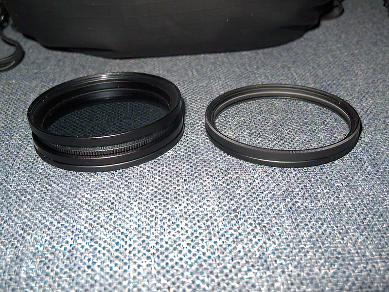 Now onto my filters, my preferred (slim) CPL filter has a 58mm thread so I first fitted one of my 62mm XUME filter adapters and then a 62-58mm step down ring and then the filter. Because the step down ring makes the filter somewhat recessed and fiddly to adjust I then fitted a 58-62mm step up ring which makes the filter easy to adjust and also provides a little shading to the filter. I’ve tested and with this arrangement fitted it doesn’t cause any vignetting as it’s still considerably shorter than using the hood. I’m also packing a 62mm clear filter and XUME filter adapter to quickly snap on the lens to protect the front element should I need it in harsh environments, rain, snow (with my rain cover fitted), dust etc.. Easier, quicker and safer to clean the filter than the front lens element when required.
