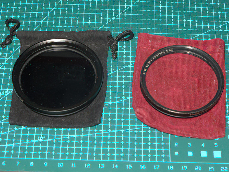 In keeping with making my kit as light and compact as possible I hit on the idea of using some of those small, soft, velvet? pouches that one can get cheaply online that they sell for jewellery etc. for my filters. Shown below on the left, my 62mm CPL filter and on the right my 62 mm UV filter both with XUME filter adapters fitted. I chose two colours of pouches to easily and quickly distinguish between the filters. Additionally, I fitted a 62mm-67mm step up ring to the CPL filter which makes it easier to grip and adjust and it shades it a little. These afford all the protection needed as they fit snugly and securely in two of the inside elasticated mesh pockets in my Wandrd tech bag that I’m using as my camera bag.