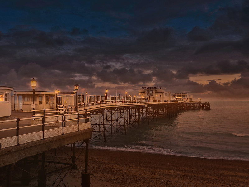 As the weather here doesn’t look great next week I decided to go into Worthing yesterday. This is the first of my works of Worthing by night. I took my Olympus E-PL8 camera and M.Zuiko 17mm f/1.8 lens. I used my Kenko Black Diffusion 0.5 filter. I took but didn’t need to use my small hybrid table top tripod.