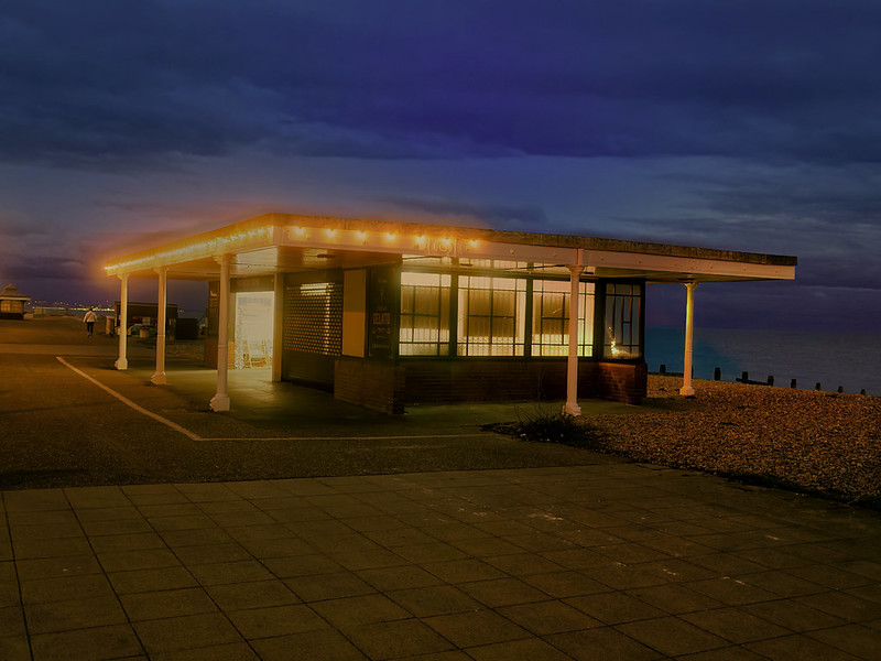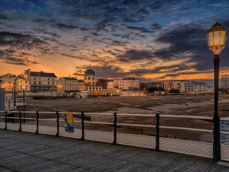 Worthing, West Sussex, UK. The building with the dome-shaped roof is the historic Worthing Dome a beautiful setting where my wife and I got married on a lovely hot and sunny July Summer’s day. It always brings back many happy memories every time I visit Worthing. We had the service in the atrium at the top of the dome and the reception two stories lower down, with a posh fish and chips dinner and an absolutely brilliant Elvis tribute act as my wife’s always been a big fan of the man and his music, πŸ™‚ and the balcony looking out towards the Pier and the seafront, magical.