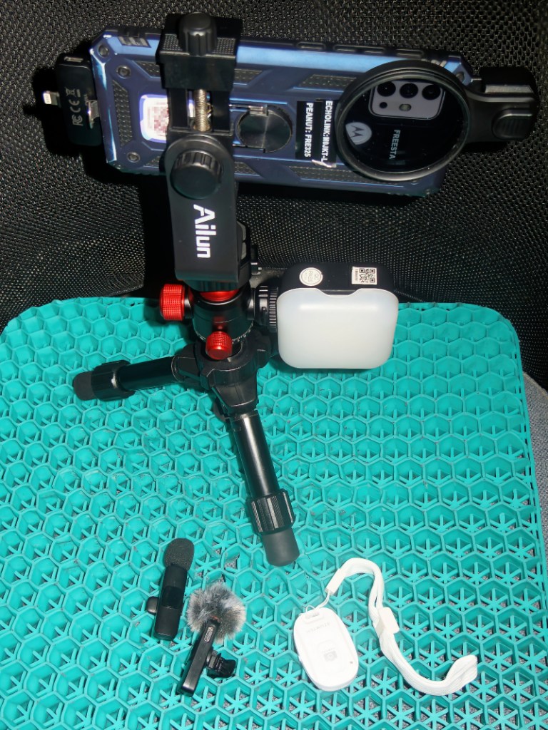 To complete the accessories I purchased a set of two bluetooth ATUMTEK Camera Remote Shutters. as well as a K&F CONCEPT 58mm Press-on Phone Lens Filter Adapter. This comes in a nice hard case with a lanyard and they do them to fit 58mm (my standard size) and 67mm filters. I’ve tried this with a CPL filter and also a black mist filter and it works well and I also fitted a lens hood. Lastly I purchased an HMKCH Wireless Microphone Kit. In the kit you get a wireless receiver that has both USB type C and Lightning connectors, two lavalier type tie clip microphones, two of each of two types of pop shield/wind shield, a charge cable and a USB A to USB-C adapter. I like that both the microphones and the receiver have a USB type C female connector for charging as I’ve standardised on this type of connector. I tested the mics and receiver on both the phone and my PC (using the USB adapter) and they worked. They’re not the best quality in the world but for my fledgling outing into the world of mobile phone videography they’ll do. Move over Spielberg. I’m coming through!. I wonder how much Jeff Bezos and Melania Trump would pay me to film the sequel?. πŸ™‚