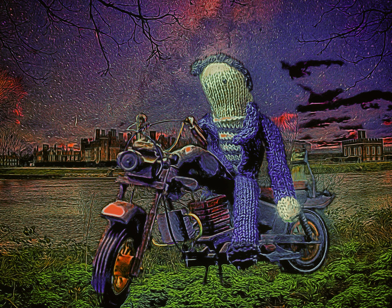 “Midnight Rider”. Green screen combined shot using E-M1 mk 1+M.Zuiko 30mm macro lens of an Elvis Presley knitted figure riding a wooden model motorbike. Helped me to pass a bit of time this morning as it’s raining and I’ve not got anywhere interesting to go.