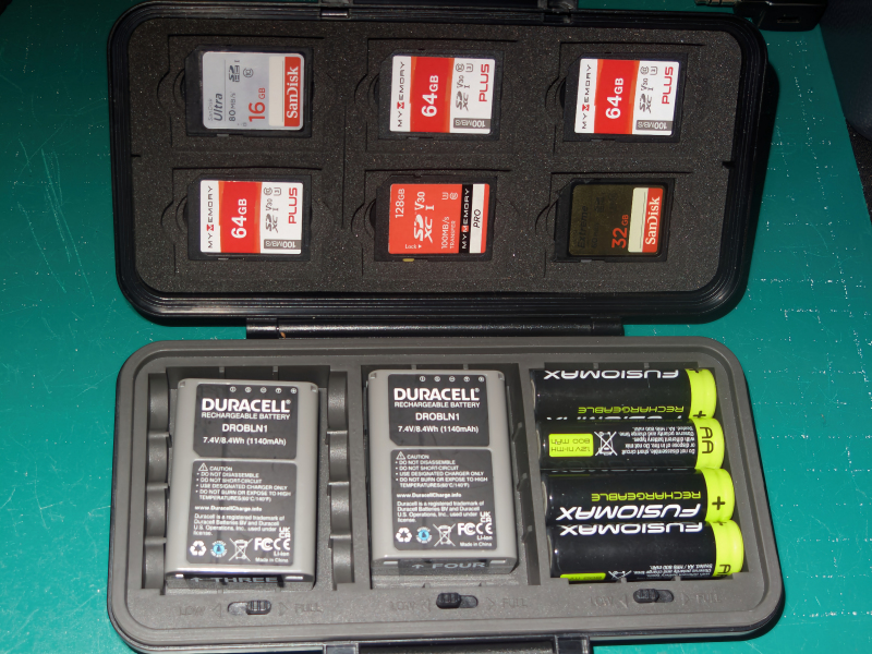 I purchased a new battery and memory card case. Whilst I’m more than happy with my existing case which holds 2 spare camera batteries and several SD memory cards as I very rarely have the need to take more than this out with me except when travelling. This case will hold 6 memory cards as well as three camera batteries and the end compartments can be used instead to hold a total of eight AA batteries. I don’t really have anything that takes AA batteries as all my gear is USB-charged and, although I own a couple of battery-powered flash guns and LED lights they don’t get much use but it’s a nice touch, good to have the option, and one never knows, it might occasionally come in handy.
