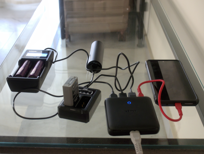 Update: I’ve now had a chance to try out passthrough charging the Anker Nano power bank (USB Type-C) and my phone and also simultaneously charging two camera batteries using my JJC USB dual camera battery charger (USB Type-A) from my Motorola 50w USB wall charger. All seem to work well, so these are going in my camera bag hand luggage. πŸ™‚ These are the things that I most frequently need to charge and serving as a backup to the charging gear in the tech bag in my hold luggage should my case go missing.